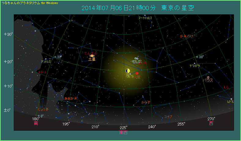 火星とスピカに月が近づく 2014年7月6日