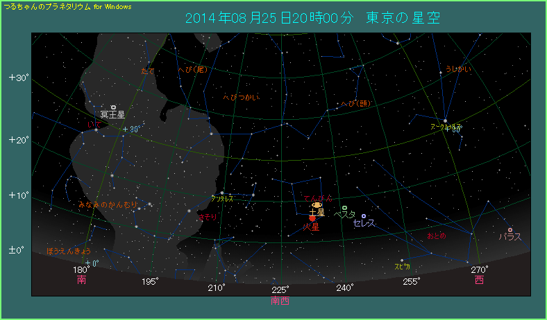 火星と土星がてんびん座で並ぶ 2014年8月25日から26日