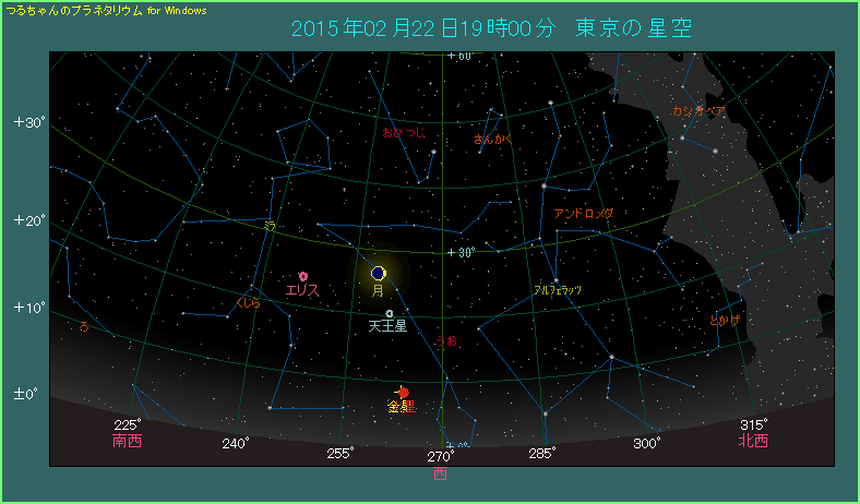 2月22日の日の入り後、金星と火星が0.4度まで大接近します。金星と火星はピッタリ横に並んでおり、なかなかお目にかかれない眺めとなります。もし仮にこの日に見られなくても、20日から23日にかけて、両天体の間隔が1度を切った状態が続きますから、他の日もチャンスがあります。1日間隔で金星と火星の位置をプロットした星図も用意しましたので、観測される際に活用してください。