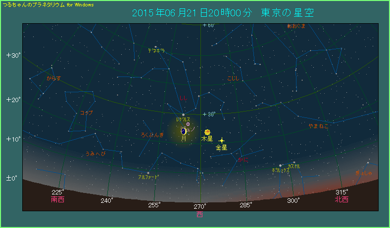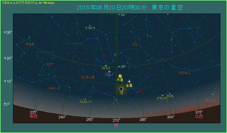 月と金星と木星が緩やかに集まる 2015年6月20日と21日