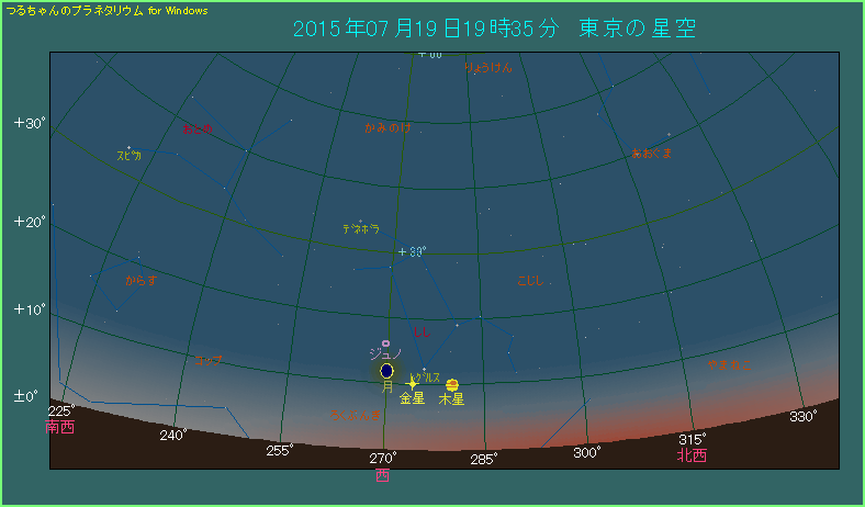 金星と木星に月が近づく 2015年7月18日から19日