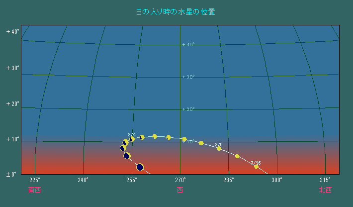 日の入り時刻における水星の位置変化