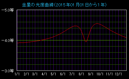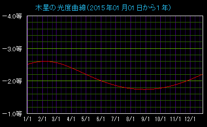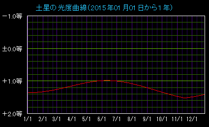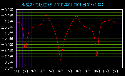 2015年の水星、金星、火星、木星、土星の光度曲線です。