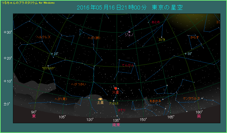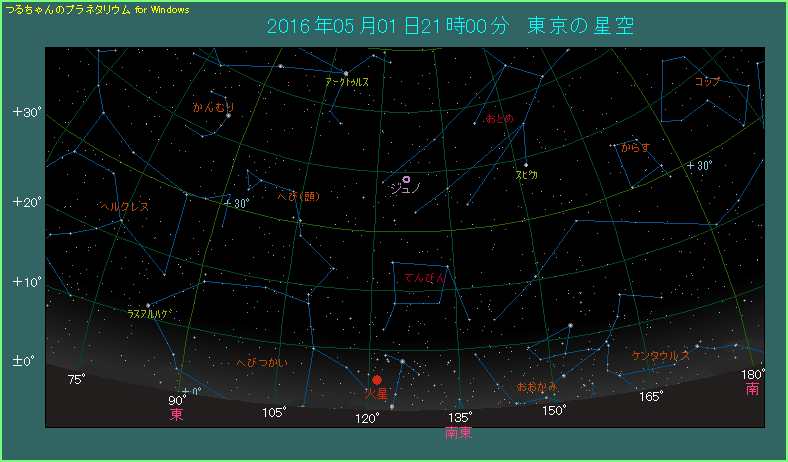 火星が見える位置 2016年5月1から6月30日