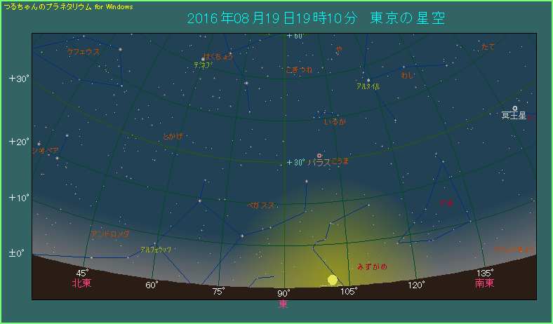 8月19日の夕方、月が海王星を隠す海王星食が見られます。といっても月齢が16.6と月の光が強烈な上に、海王星の明るさは7.8等と暗いですから、小型の天体望遠鏡で観測するのは難しそうです。また、地平線からの高度が低く、月の出が遅い西の地域では潜入はおろか、出現も見ることができません。ということで今回の海王星食は、残念ながら一般の方はあきらめた方がよさそうです。
