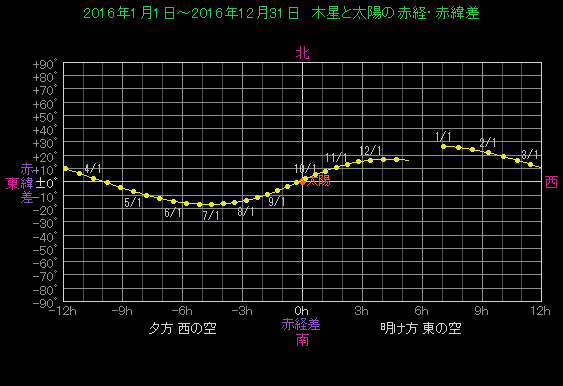 木星と太陽の赤経・赤緯差グラフ |