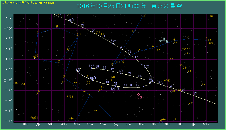 セレスの経路を拡大した星図(赤道座標系) |