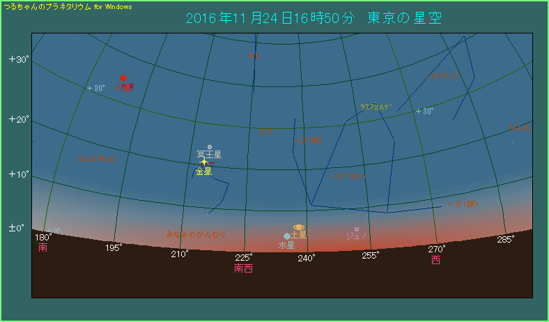 11月24日は夕空で水星と土星が並びます。
