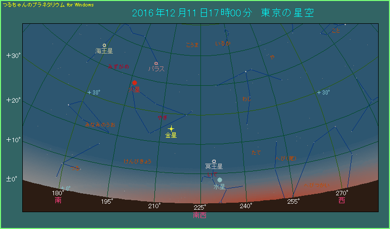12月11日17時に水星が見える位置 |