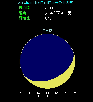 元旦に続いて1月2日も天体の接近が見られます。この日は月と金星が1.2度まで近づいて、夕空を華やかに演出します。