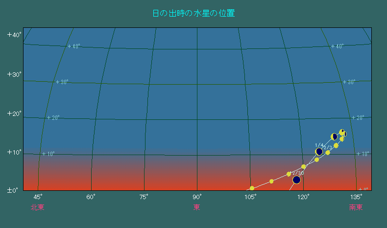 1月19日は水星が太陽の西側へ最も離れる西方最大離角を迎えます。