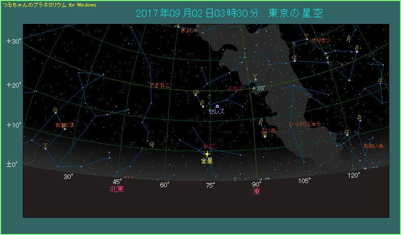 東京で3時半頃だと、金星は10度そこそこの高度です。3時45分から薄明が始まりますから、あまり時間的な余裕はありません。