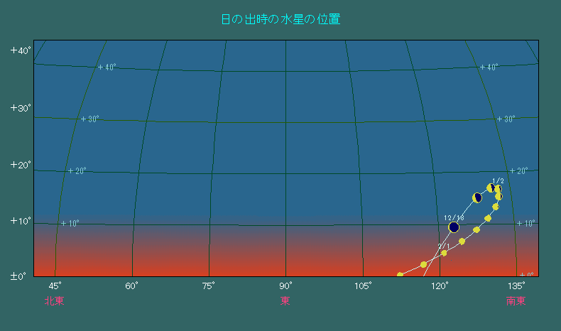 2018年の年初、夜明け前の低空で水星が見つけやすくなります。
