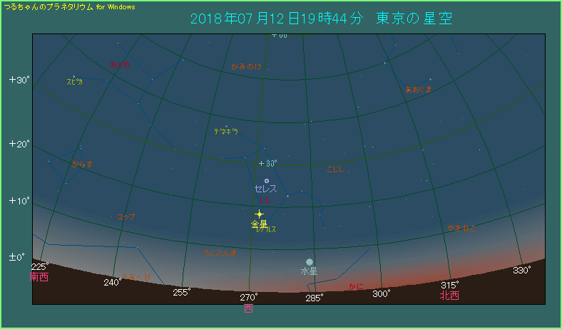 7月12日は水星が太陽の東側へ最も離れる東方最大離角になります。