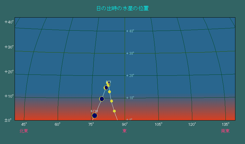 8月27日は水星が太陽から西側へ最も離れる西方最大離角となります。