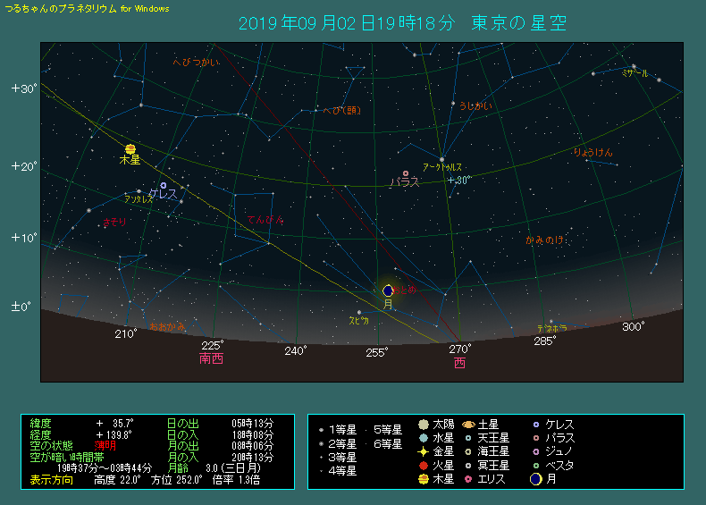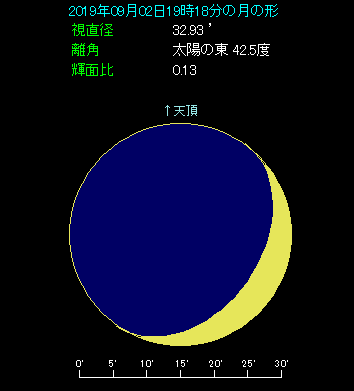 それから、月の大きさが違うことにお気づきでしょうか。3月10日は月が地球から最遠となってから3日しか経っていないのに対し、9月2日は地球に最接近して2日しか経っていません。このため見かけの大きさ(視直径)が、8.6%違っています。同じ三日月でも、大きさが変化しているのも興味深いところです。