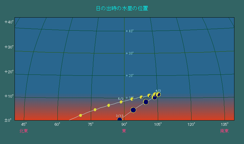 4月12日は水星が太陽の西側へ最も離れる西方最大離角となります。