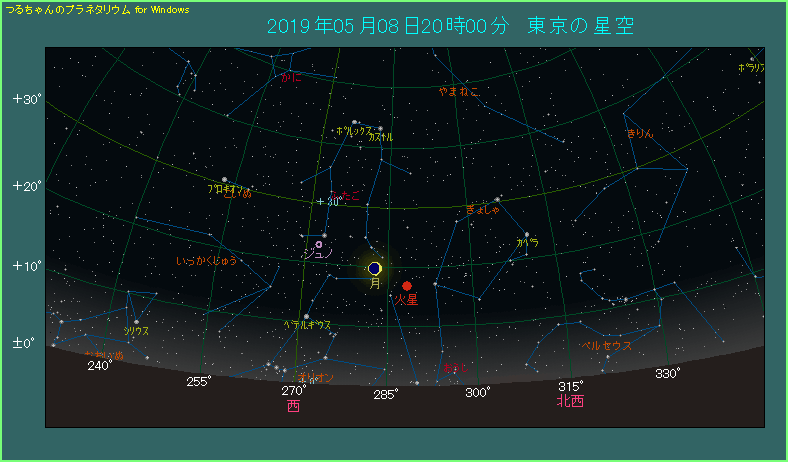 5月8日の夕方、月と火星が近づきます。