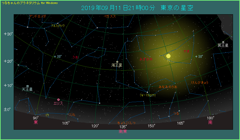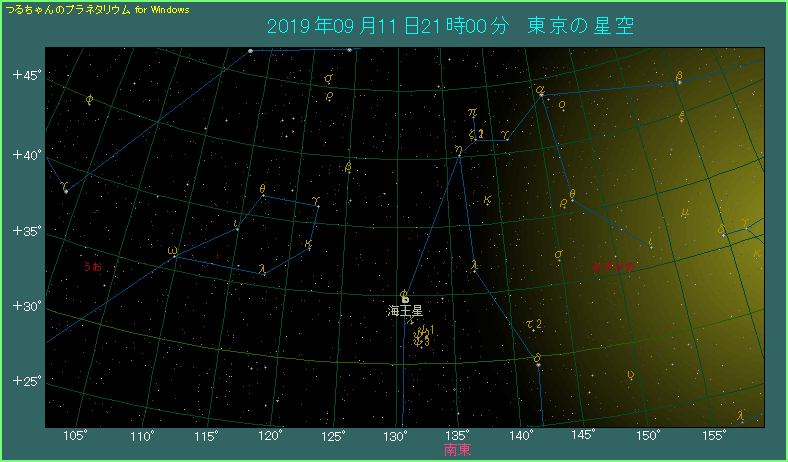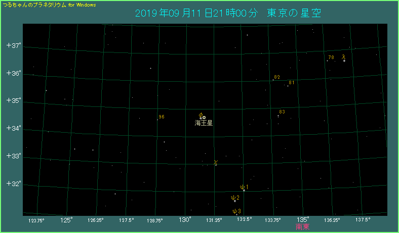 さらに9月16日から17日にかけて、海王星がφ星に1分角(前後?)まで近づいて、海王星を見つける絶好のチャンスです。倍率の低い双眼鏡では2星を分離するのが難しいですから、天体望遠鏡を使って海王星を見つけてください。