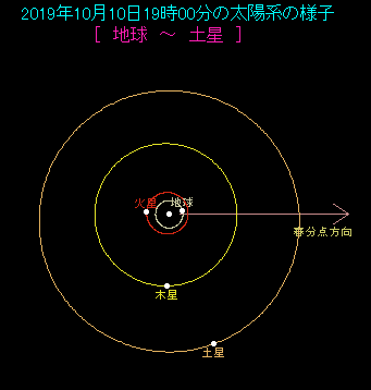 10月10日は土星が太陽の東側へ90度離れる東矩となります。