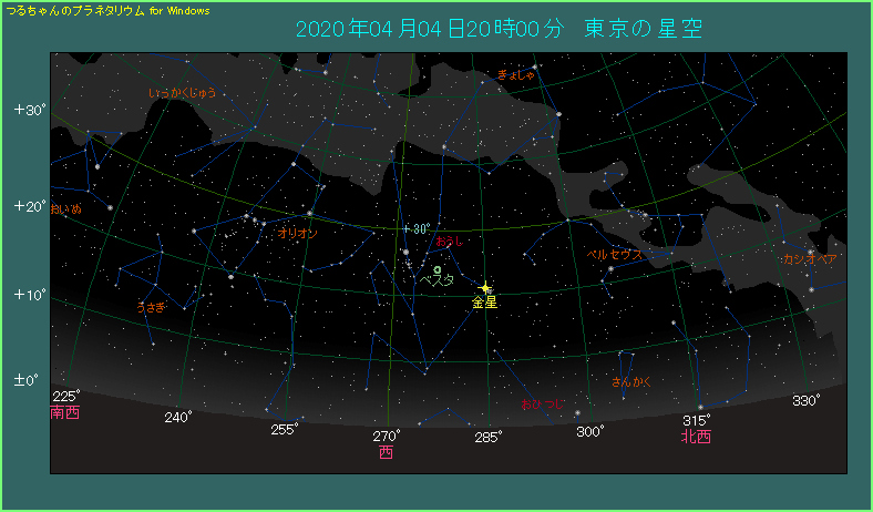 4月4日は金星がすばる(プレアデス星団)に近づいて、夕方すばるの端をかすめます。