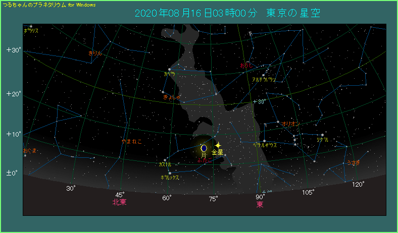8月16日の未明、月と金星が横に並びます。