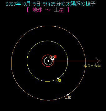 東矩とは、地球から見た惑星が、太陽の東側へ90度離れることです。太陽系の図を見ると、太陽−地球−木星を結んだ直線の作る角度が90度になっています。東矩の頃の惑星は日の入り頃に南中しますので、空が暗くなったら早い目に観測する必要があります。