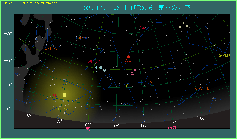 10月6日21時 東南東で赤く明るく輝く |