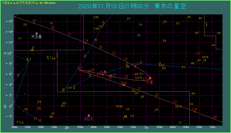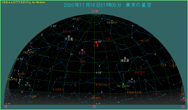 火星の移動経路を示した下の星図をご覧ください。11月16日に動く向きが変わっており、留であることがわかります。