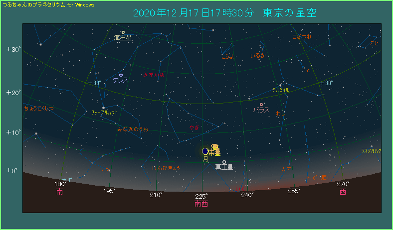 月の入りは19時2分ですので、あまり時間に余裕はありません。少し早い目から見始めて、3天体の美しい接近を、心ゆくまで楽しんでください。