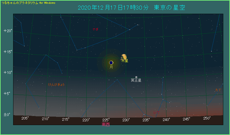 12月17日は最高の条件で、月が木星と土星へ接近します。