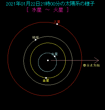 そんな折、火星が東矩となります。東矩とは、惑星が太陽の東側へ90度離れた位置へやってくることです。太陽系の図を見ると、火星、地球、太陽を順に結んでできた角度が、90度になっています。