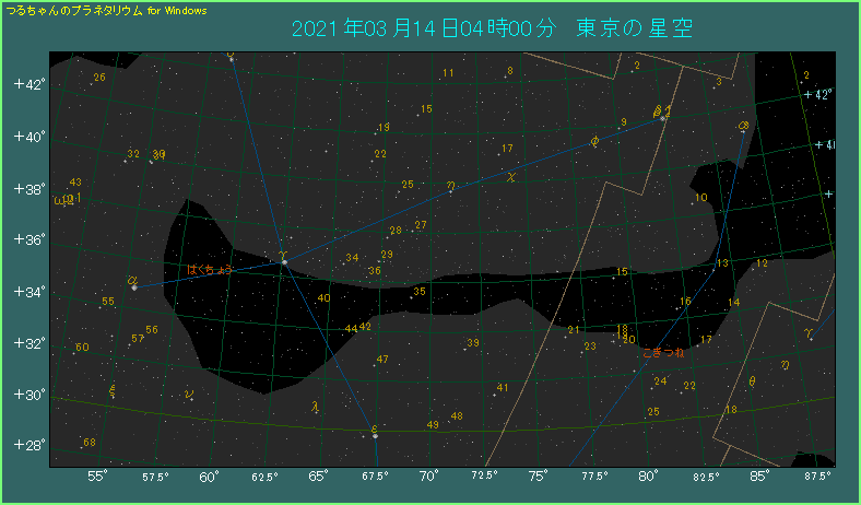 はくちょう座にある変光星のχ星が、3月14日頃に極大を迎え、肉眼でも観測できるようになります。
