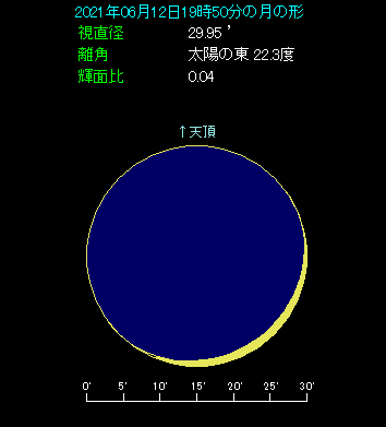 6月12日の夕方、細い月と金星が接近します。