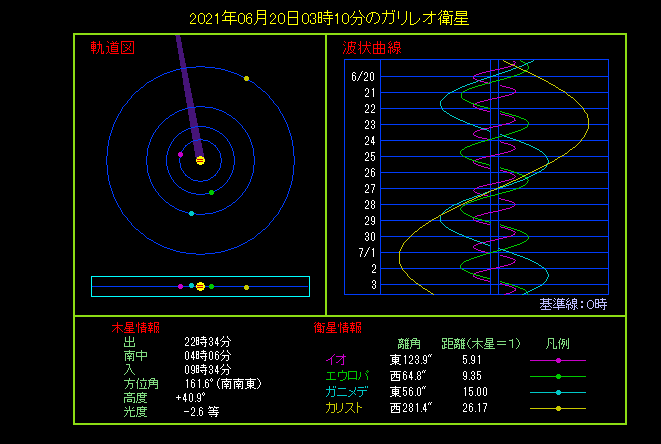 今年は6年に一度めぐってくる、ガリレオ衛星相互食の年にあたります。 6月20日は第一衛星イオが、第三衛星ガニメデの影に入る食が見られます。最大で0.45等暗くなります。