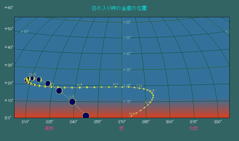 日の入り時刻における金星の位置 |