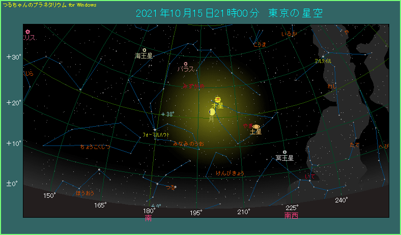 10月15日に月と木星が斜めに並びます。
