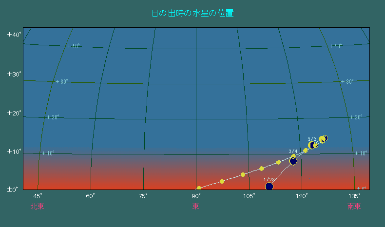 日の出時刻における水星の位置変化 |