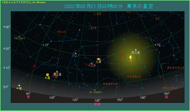 5月21日は土星が西矩となり、太陽の西側へ90度離れます。