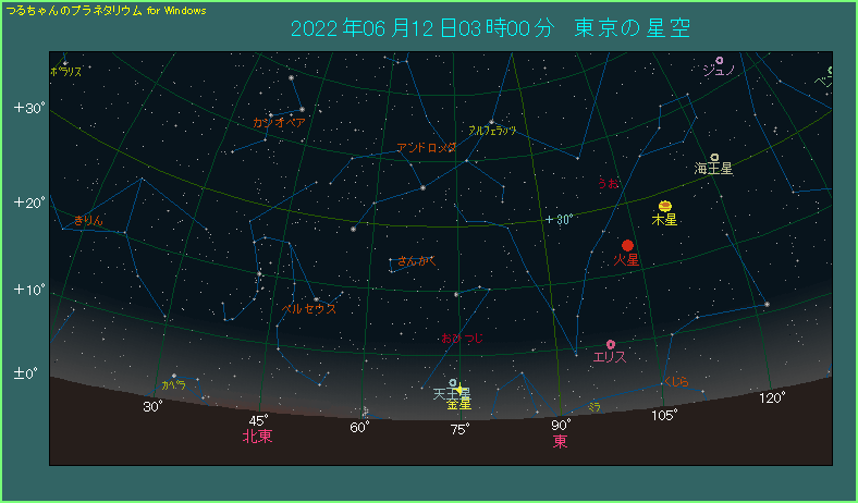 東京では2時36分から薄明が始まっています。空が明るくなり始めている上に低空ですから、サッサと観測を終えるようにしてください。