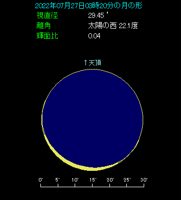 月の光は思った以上に弱々しいものです。しかも低空ですから、肉眼で見つけられるとは限りません。双眼鏡を用意しておかれた方がよいでしょう。