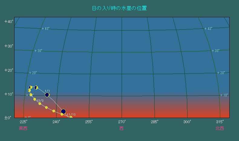 12月22日は水星が太陽から東側へ最も離れ、東方最大離角となります。