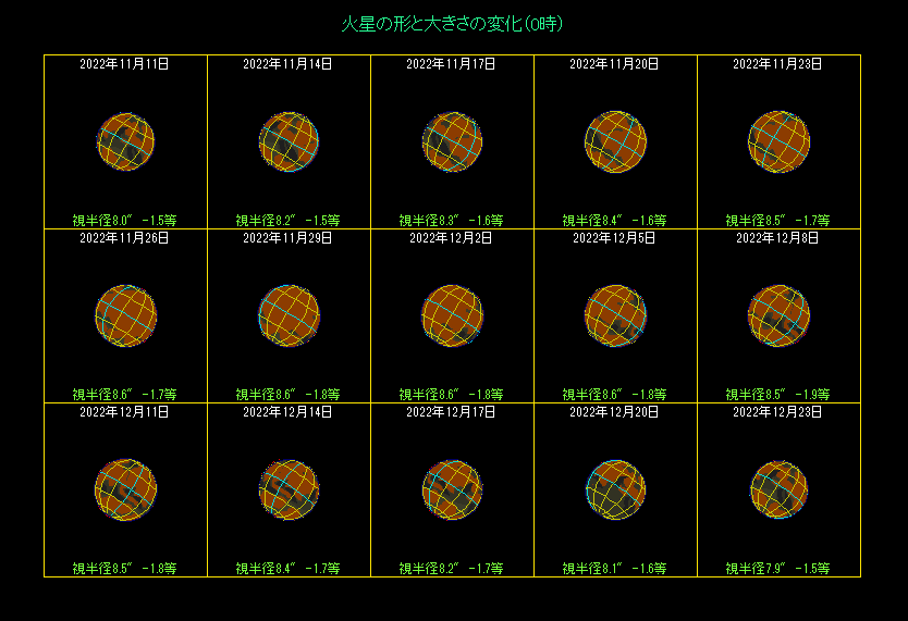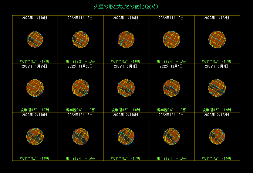 火星の様子(11月10日から3日間隔、20時) |