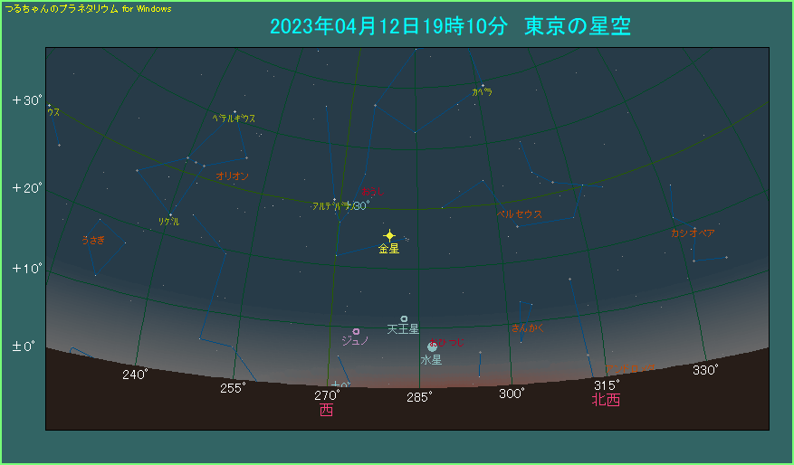 4月12日は水星が東方最大離角となり、夕方の西空で見つけやすくなります。