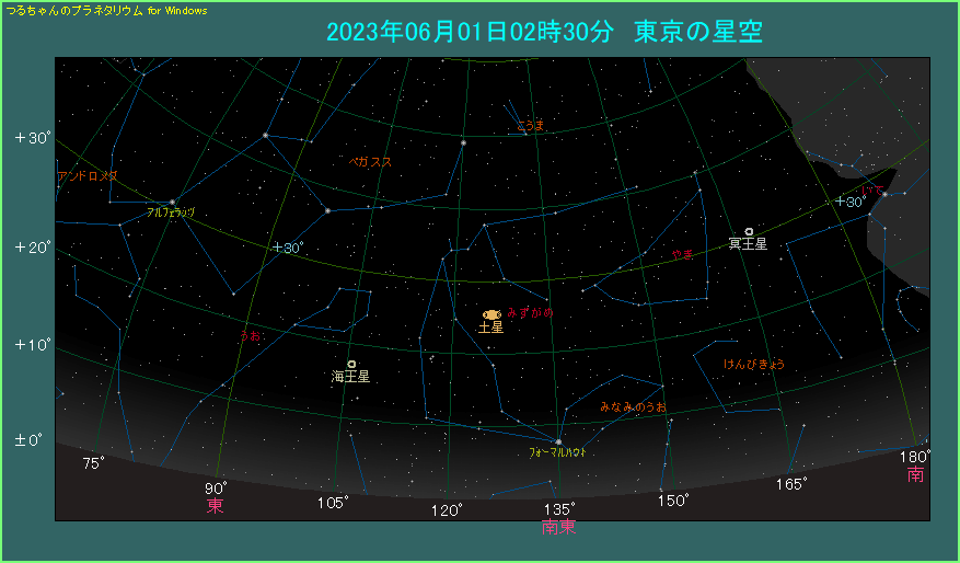 6月1日は土星が西矩となります。西矩とは惑星が太陽の西側へ90度離れることです。