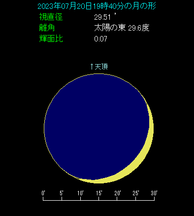 昨日よりも月齢が一つ上がって2.7ですので、肉眼でもグッと見やすくなります。金星は月の左下です。空はまだ強い薄明中で高度も6.9度と低いですが、金星はマイナス4等級ですのですぐにわかるでしょう。間隔は7度ちょうどで、だいぶ広い目です。