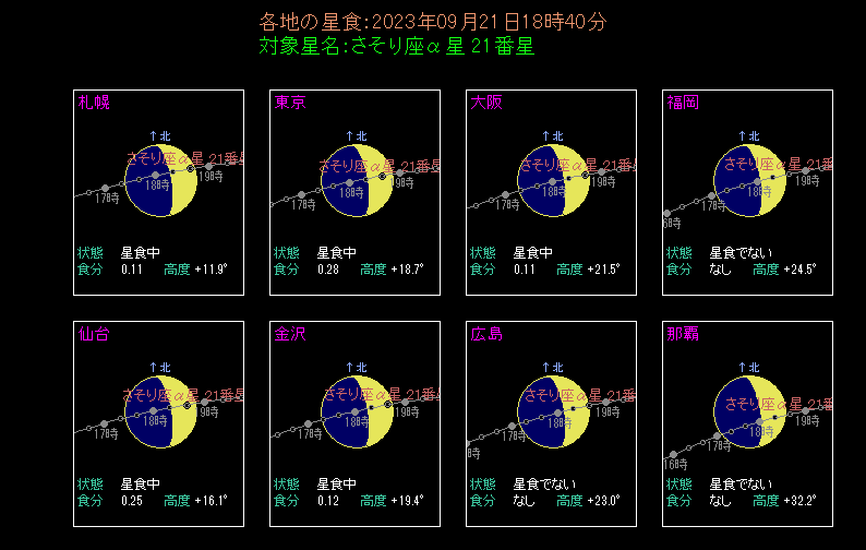 2023年9月21日は日本各地でアンタレス食が見られます。