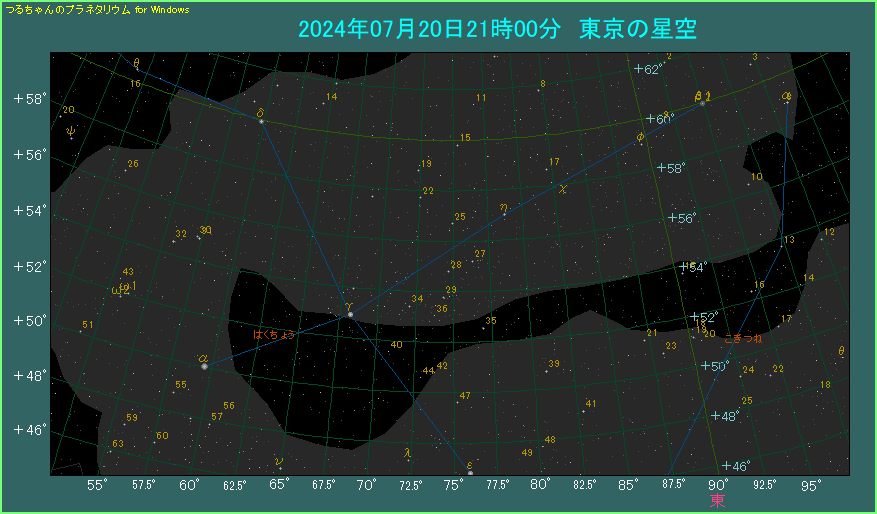 はくちょう座χ星はη星とβ星の間にあります。付近で見慣れない4等級の星を見つけたらχ星でしょう。今回ははくちょう座が見やすい時期に極大になりますので、この機会に変光星観測に挑戦してください。