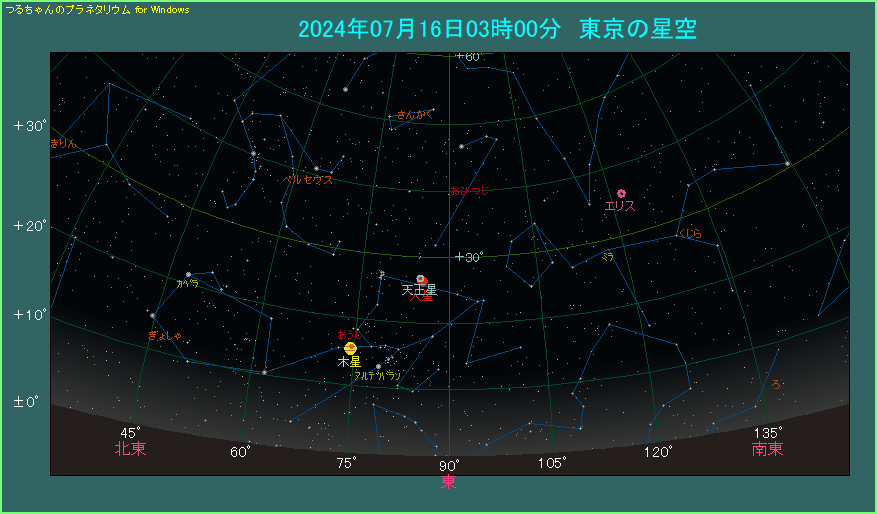 7月16日だけでなく、前日の15日と翌日の17日も、1度を切る大接近です。7月16日に見るのは難しい方も、あきらめずに日をずらしてご覧ください。ただし、火星と天王星の位置関係が変わりますから注意しましょう。