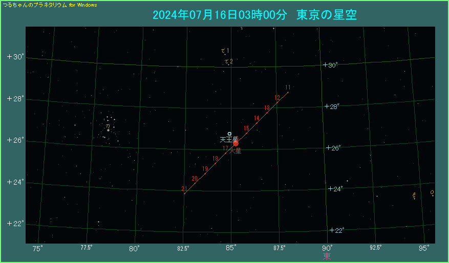 7月16日は火星と天王星が0.5度まで大接近します。